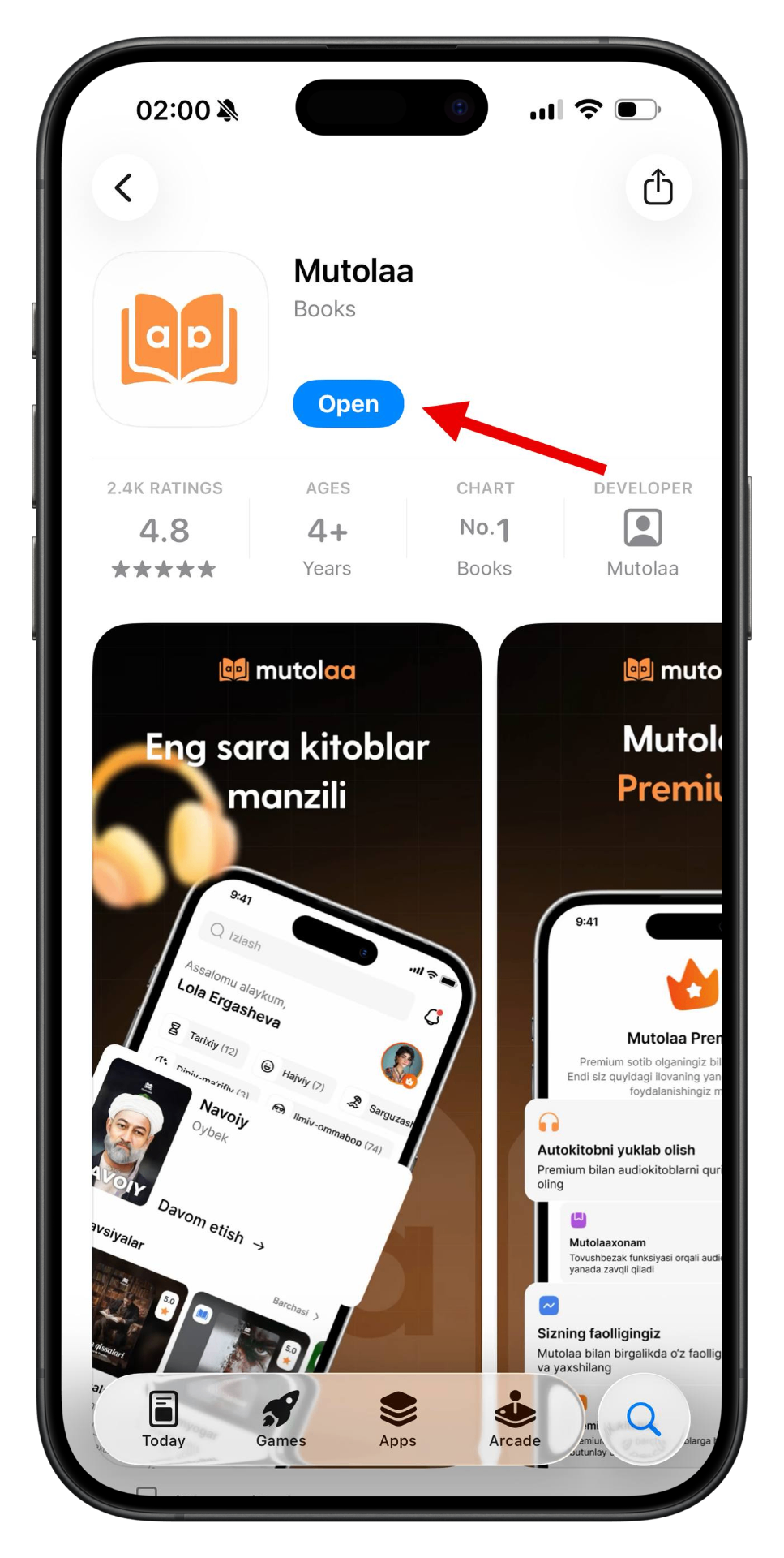 App Store yoki Google Play'dan Mutolaa ilovasini yuklab oling va oching.